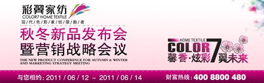 魅力彩翼 2011秋冬新品发布会暨营销战略会议将于6月12-14日在江苏南通华彩绽放。届时,来自全国各地的彩翼加盟商及来宾300多人将出席新品发布会。
